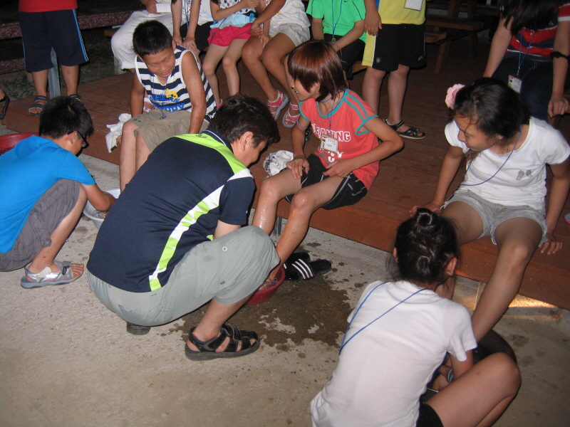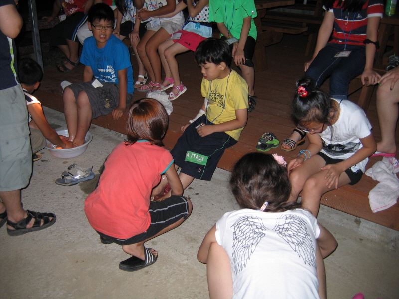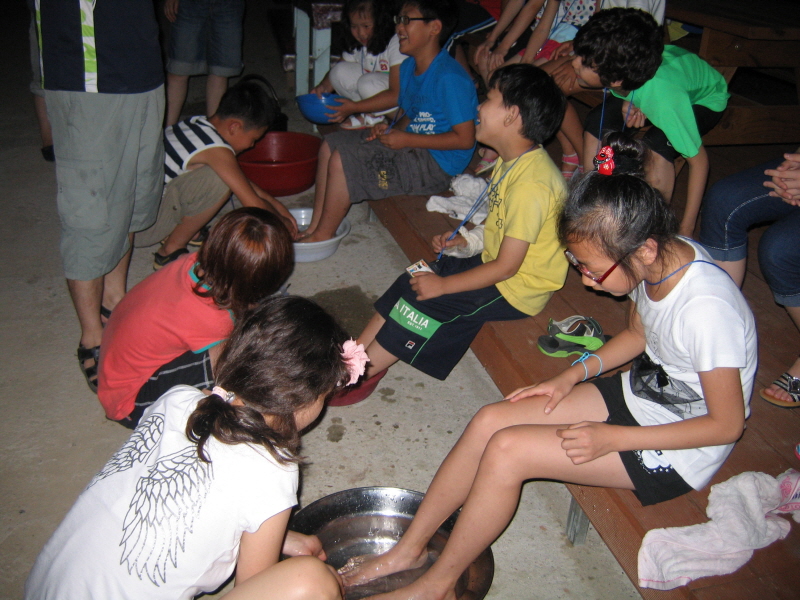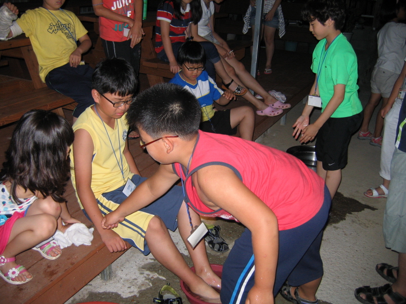 친구의 발을 씻겨주며 섬겨요