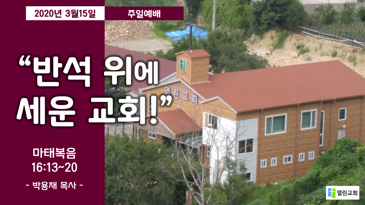 | 반석위에 세운교회(3월15일 주일설교) | 박용재목사 | 2020-03-15 | |||
